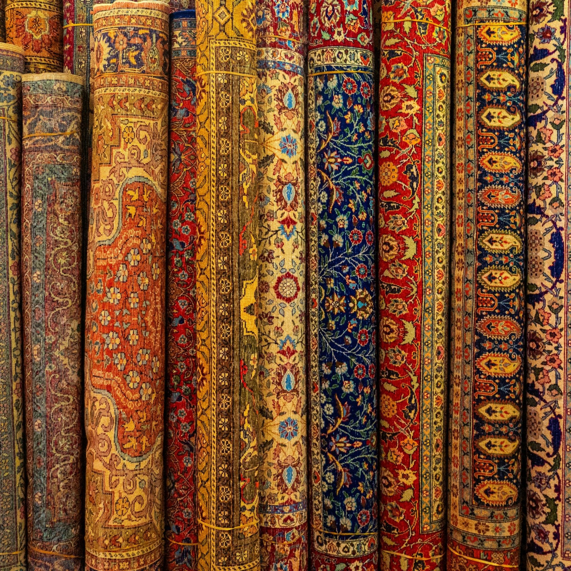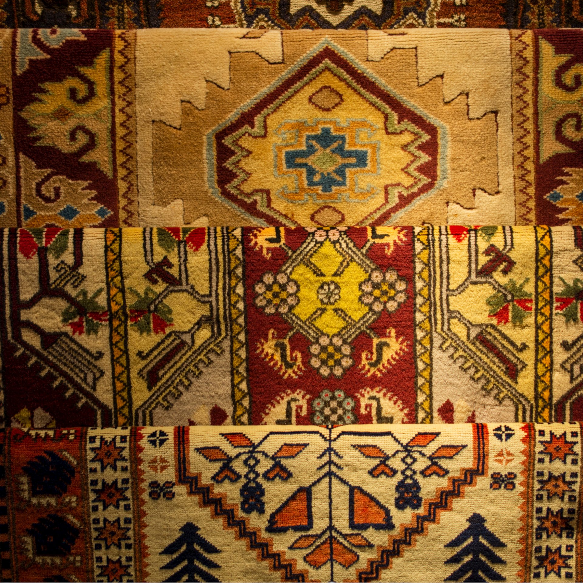 A pile of rugs sitting on top of a floor